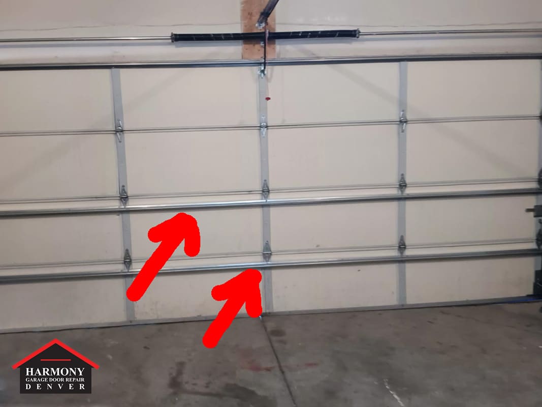 Our team completed a professional bottom section repair, restoring the integrity of the panel without requiring a full door replacement. To reinforce the repaired sections, we installed steel struts across the door panels. Struts add strength to the door, reduce bowing, and help extend the life of insulated garage doors, especially in Colorado’s changing temperatures.
