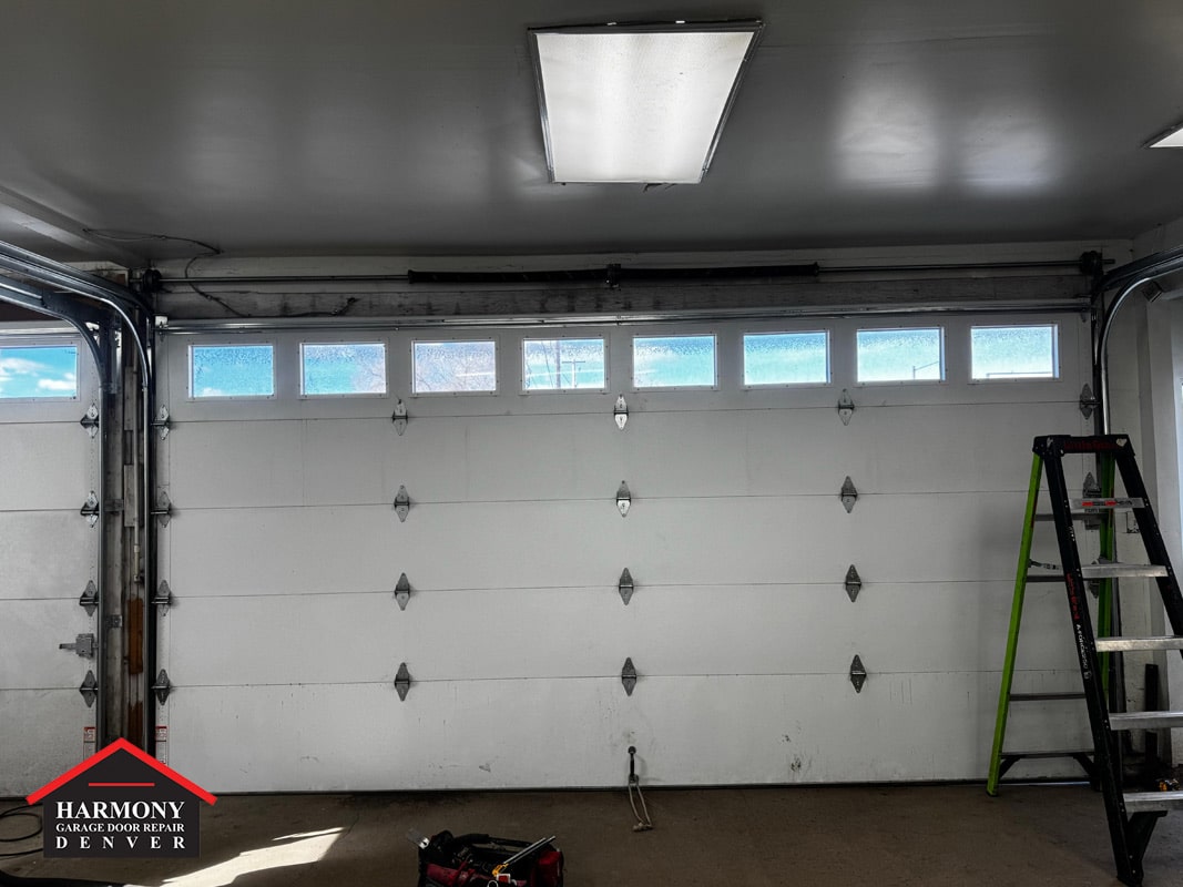 If your garage door suddenly looks crooked, won’t open evenly, or sounds “wrong” halfway up, you may need Lakewood garage door repair fast. We recently helped a homeowner in Lakewood, Colorado with a 16×8 insulated garage door with windows where the top section slipped off the track and the lift cable came off the drum. This kind of issue can cause binding, uneven lifting, and safety risks, so we restored proper alignment and smooth operation.